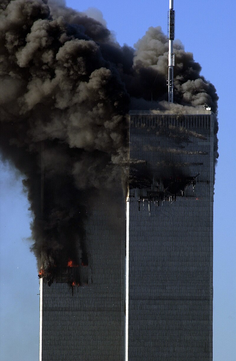 Pierwszy samolot, należący do American Airlines, uderzył w północną wieżę World Trade Center w Nowym Jorku o godzinie 8:46 rano. Zaledwie 17 minut później, o 9:03, kolejny samolot, tym razem United Airlines, trafił w południową wieżę. Oba budynki, znane jako bliźniacze wieże, zawaliły się w ciągu godziny i 41 minut, niszcząc również inne okoliczne budowle, w tym World Trade Center 7.