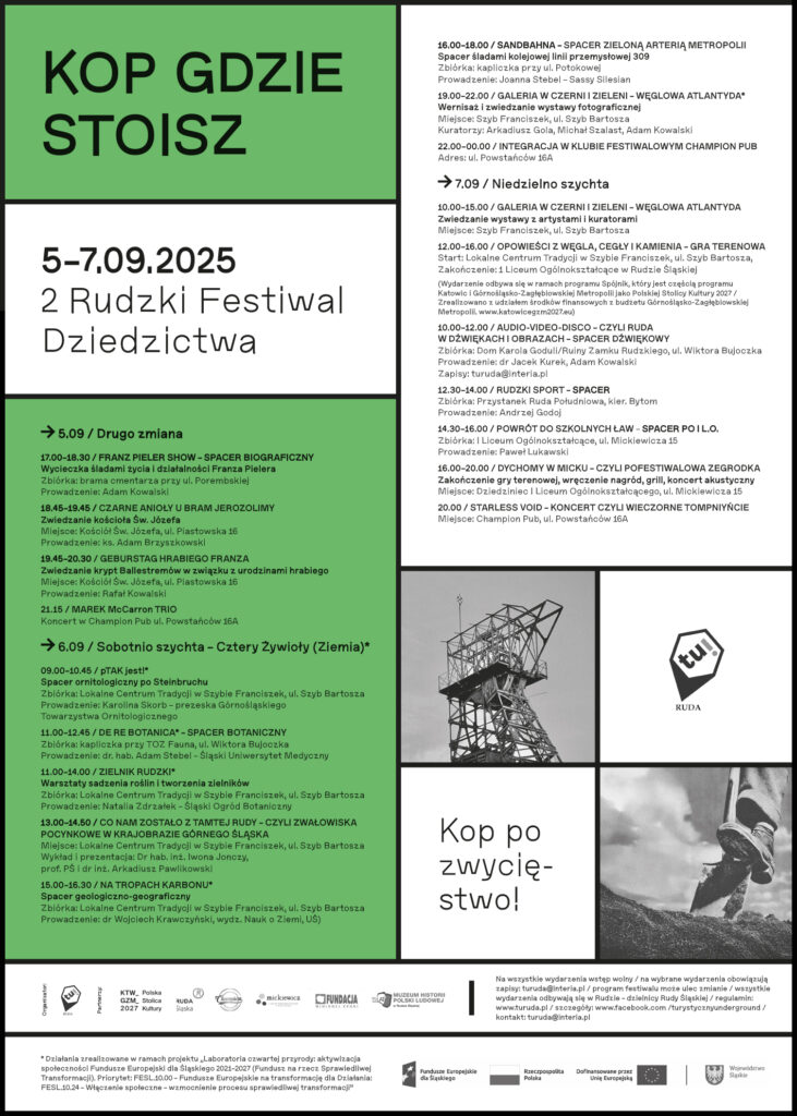 Spacer biograficzny śladami Franza Pielera, warsztaty botaniczne, koncerty, gra terenowa, wernisaż fotograficzny, spacery dźwiękowe i geologiczne – to tylko część wydarzeń przygotowanych w ramach drugiej edycji Rudzkiego Festiwalu Dziedzictwa „Kop, gdzie stoisz”, który odbędzie się w dniach 5–7 września 2025 r. w dzielnicy Ruda. Organizatorem wydarzenia jest Stowarzyszenie TURuda, a współorganizatorami i partnerami m.in. Miasto Ruda […]