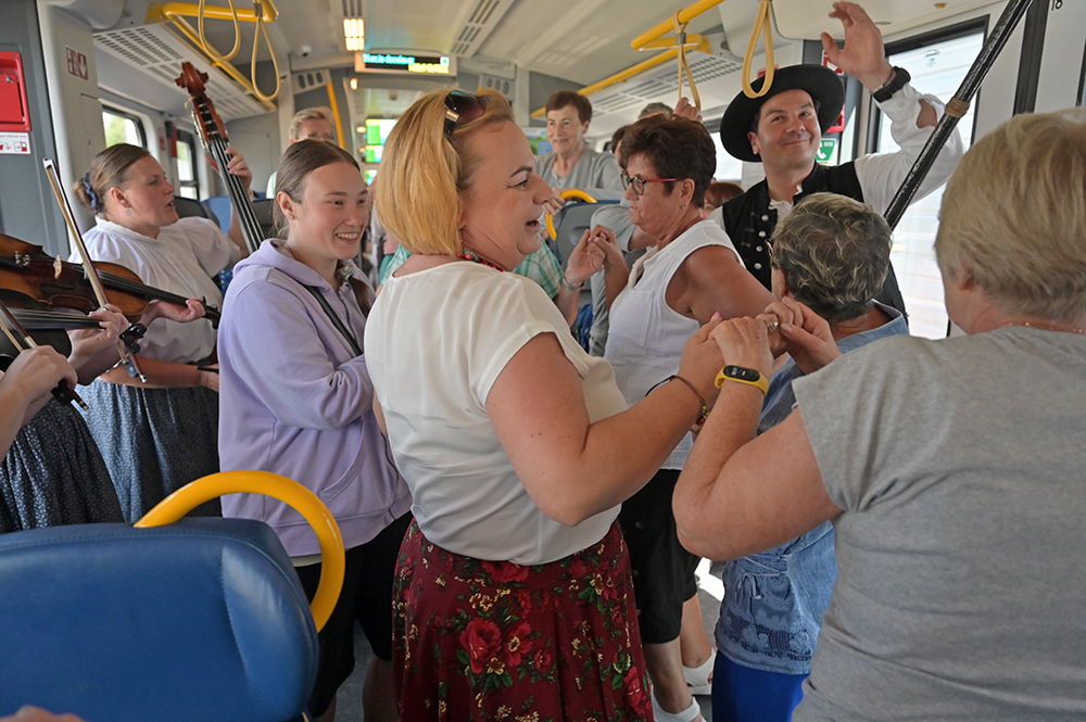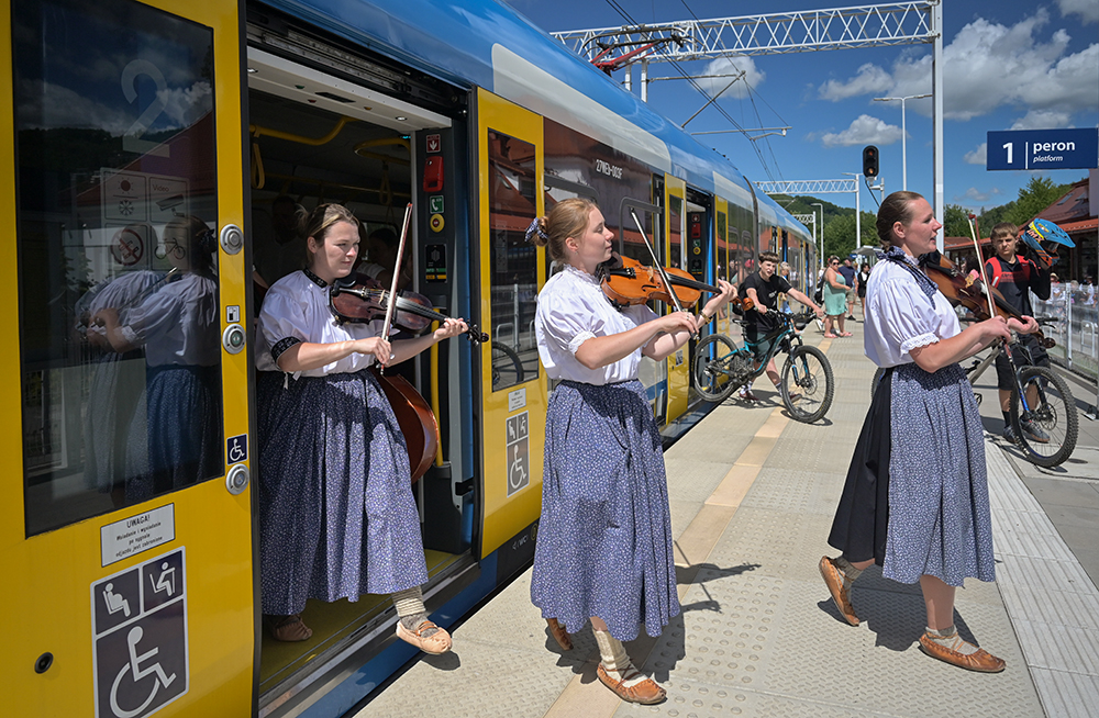 Tydzień Kultury Beskidzkiej potrwa od 26 lipca do 3 sierpnia. Ale już dziś, podróżującym do Wisły z Katowic przejazd umilała góralska kapela z Wisły. Na pokładzie pociągu rozbrzmiały m. in. “Hej bystra woda”, “Szła dzieweczka do laseczka” czy zbójnickie pieśni ze słowackich zboczy Beskidów. Pasażerowie nie tylko śpiewali, klaskali ale i tańczyli do skocznych rytmów, jakby hasło tegorocznej edycji festiwalu „Nakręć się na folklor” trafiło wprost do ich uszu i serc.