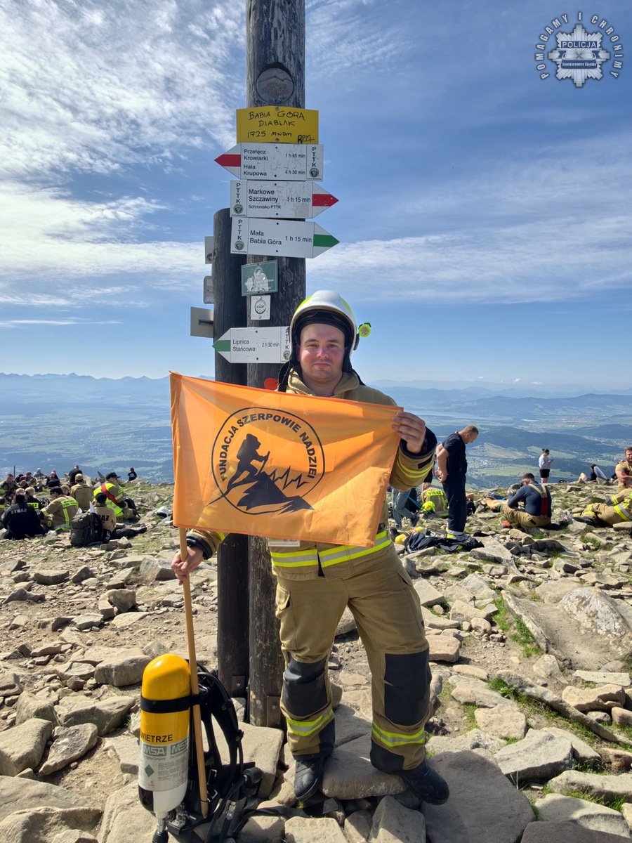 Na co dzień patroluje ulice jako funkcjonariusz drogówki w Siemianowicach Śląskich, po godzinach gasi pożary jako strażak-ochotnik w Katowicach-Podlesiu. Tym razem st. sierż. Dawid Żemła zamienił asfalt i akcje ratownicze na górski szlak. W pełnym umundurowaniu bojowym, niosąc 20-kilogramowy sprzęt, wspiął się na Babią Górę. Nie sam – razem z blisko tysiącem strażaków z całej Polski. Ich cel był jasny: pokazać, że walka z nowotworem to nie sprint, a morderczy marsz pod górę. I że można pomóc.