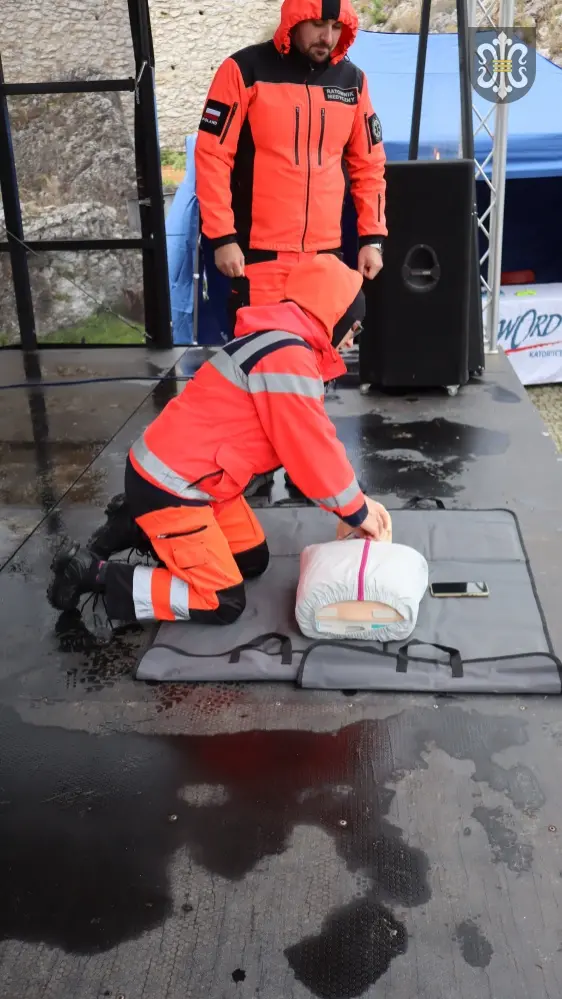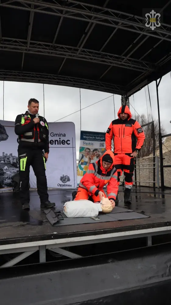 Od godziny 10:00 dziedziniec zamkowy tętnił życiem. Młodzież ze szkół podstawowych z całej gminy, pod okiem ratowników z Wojewódzkiego Pogotowia Ratunkowego w Katowicach, uczyła się, jak reagować w sytuacjach zagrożenia zdrowia i życia. Nie zabrakło ćwiczeń praktycznych, pokazów ratowniczych oraz zajęć, które w przystępny sposób pokazywały, że każdy – niezależnie od wieku – może uratować komuś życie.