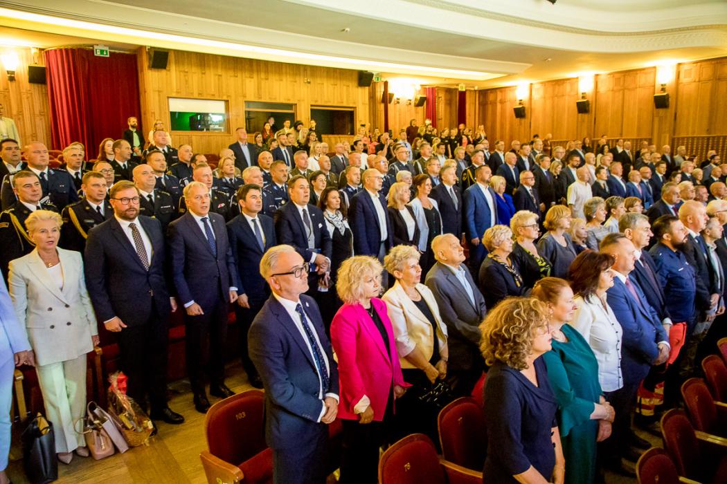 Na sali obecni byli przedstawiciele władz regionu, w tym marszałek województwa śląskiego Wojciech Saługa, wojewoda Marek Wójcik i prezydent Dąbrowy Górniczej Marcin Bazylak. Nie zabrakło parlamentarzystów, samorządowców oraz reprezentantów służb mundurowych.