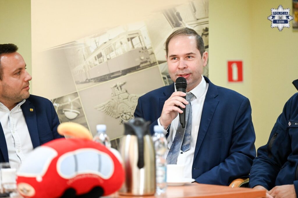 „Wysiadanie z tramwaju to nie wyścig. Zanim zrobisz krok – spójrz w prawo, spójrz w lewo” – apelował podczas konferencji mł. asp. Arkadiusz Chudy z Wydziału Ruchu Drogowego KWP w Katowicach.